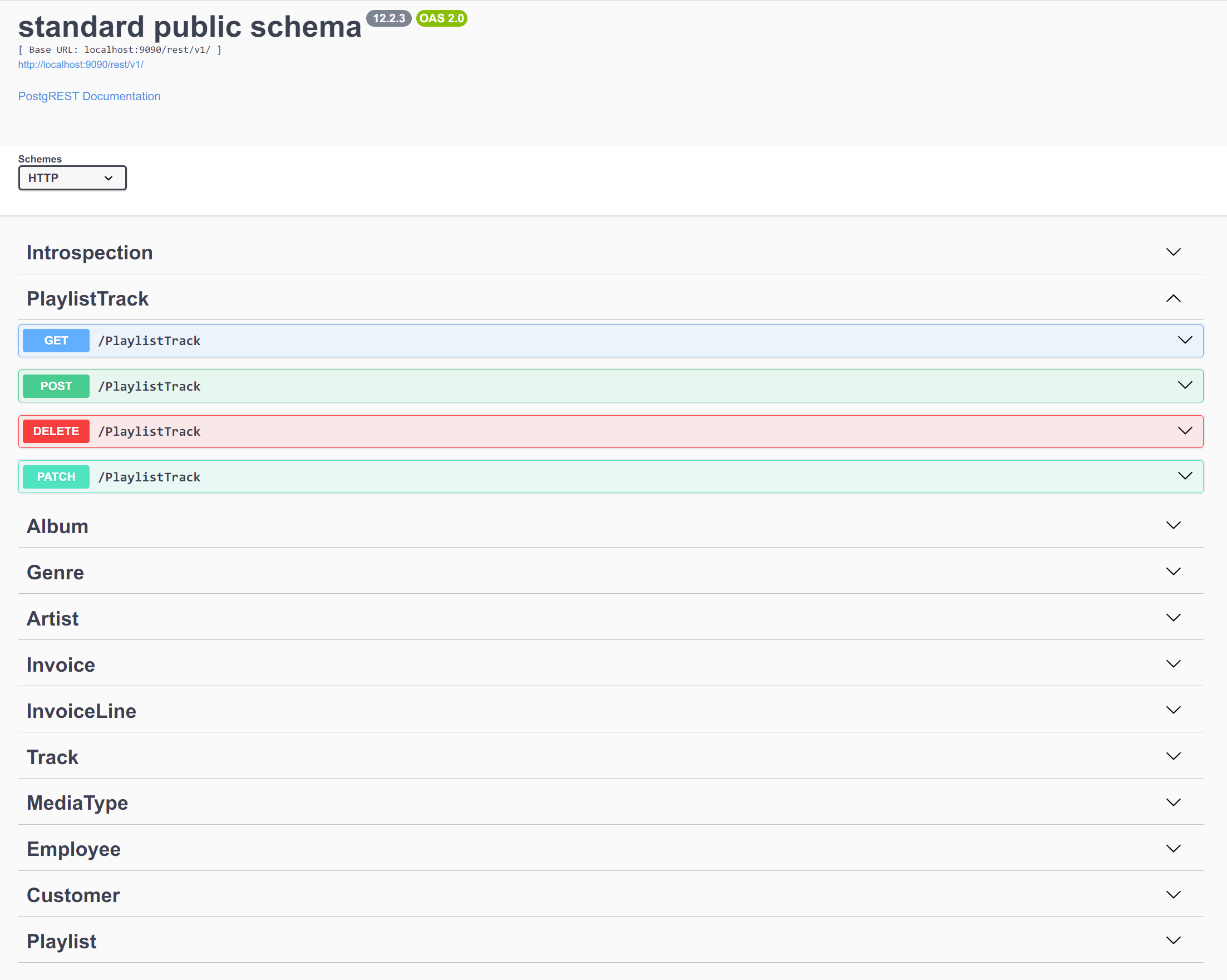 - PostgREST 自動生成の OpenAPI ドキュメントが表示されます