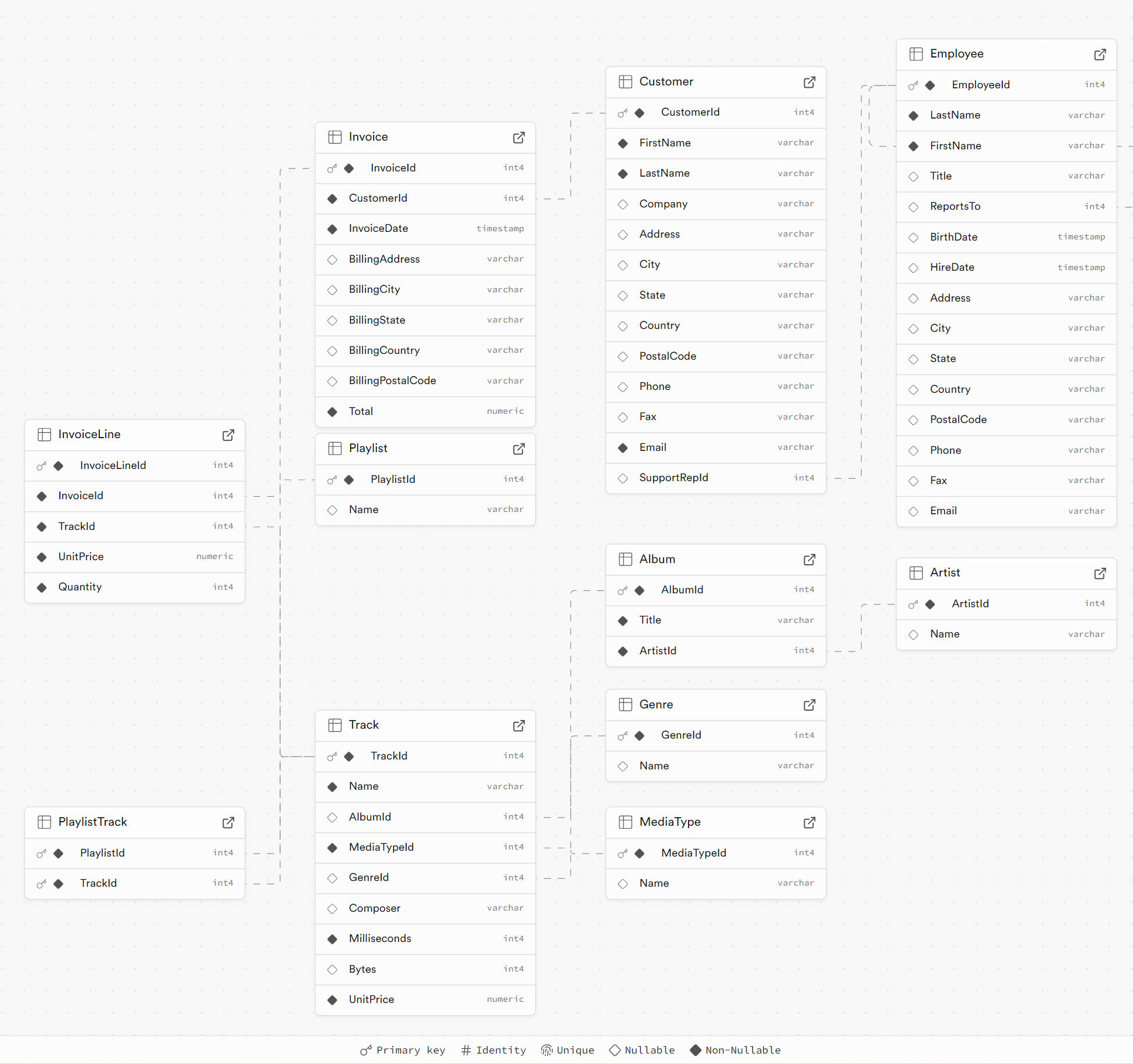 neondatabase-labs/postgres-sample-dbs にある chinook を使用します。